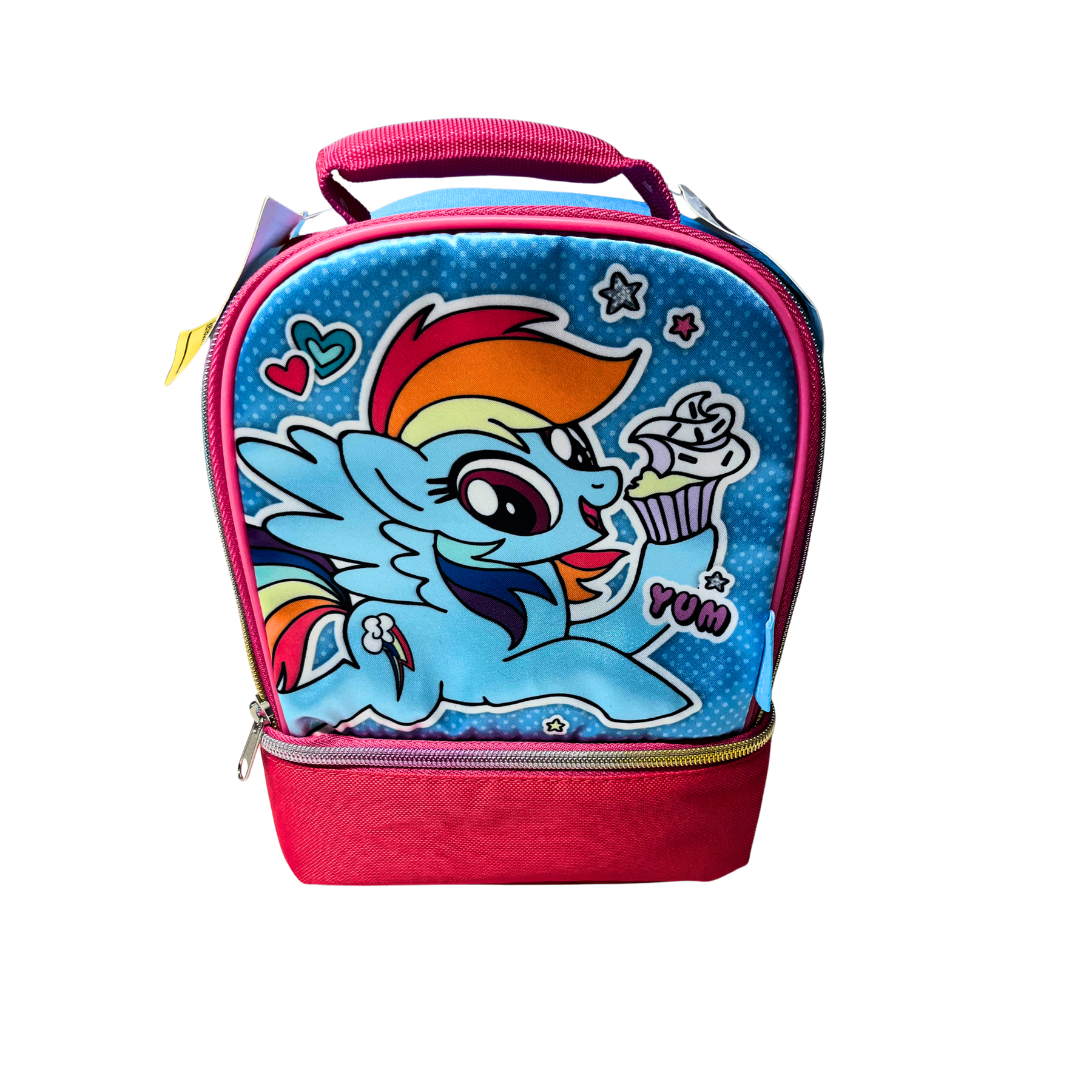 Make lunchtime more fun with this colorful My Little Pony Rainbow Dash lunch bag! Featuring a bright design with Rainbow Dash and “YUM” text, it’s perfect for school or on-the-go meals.