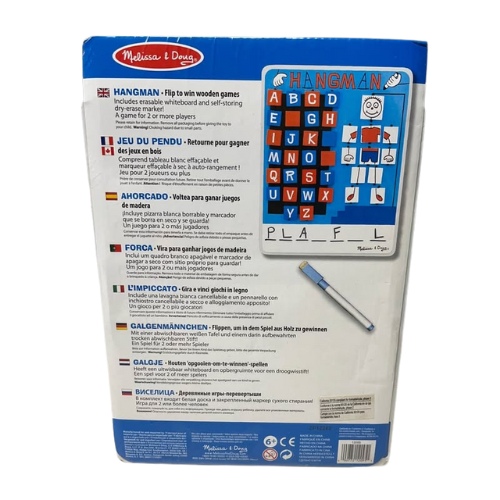 Keep kids entertained while building spelling and vocabulary skills with this Melissa & Doug Flip-to-Win Wooden Hangman Game. This classic word-guessing game features a durable wooden design with built-in letter tiles, making it perfect for play at home or on the go.
