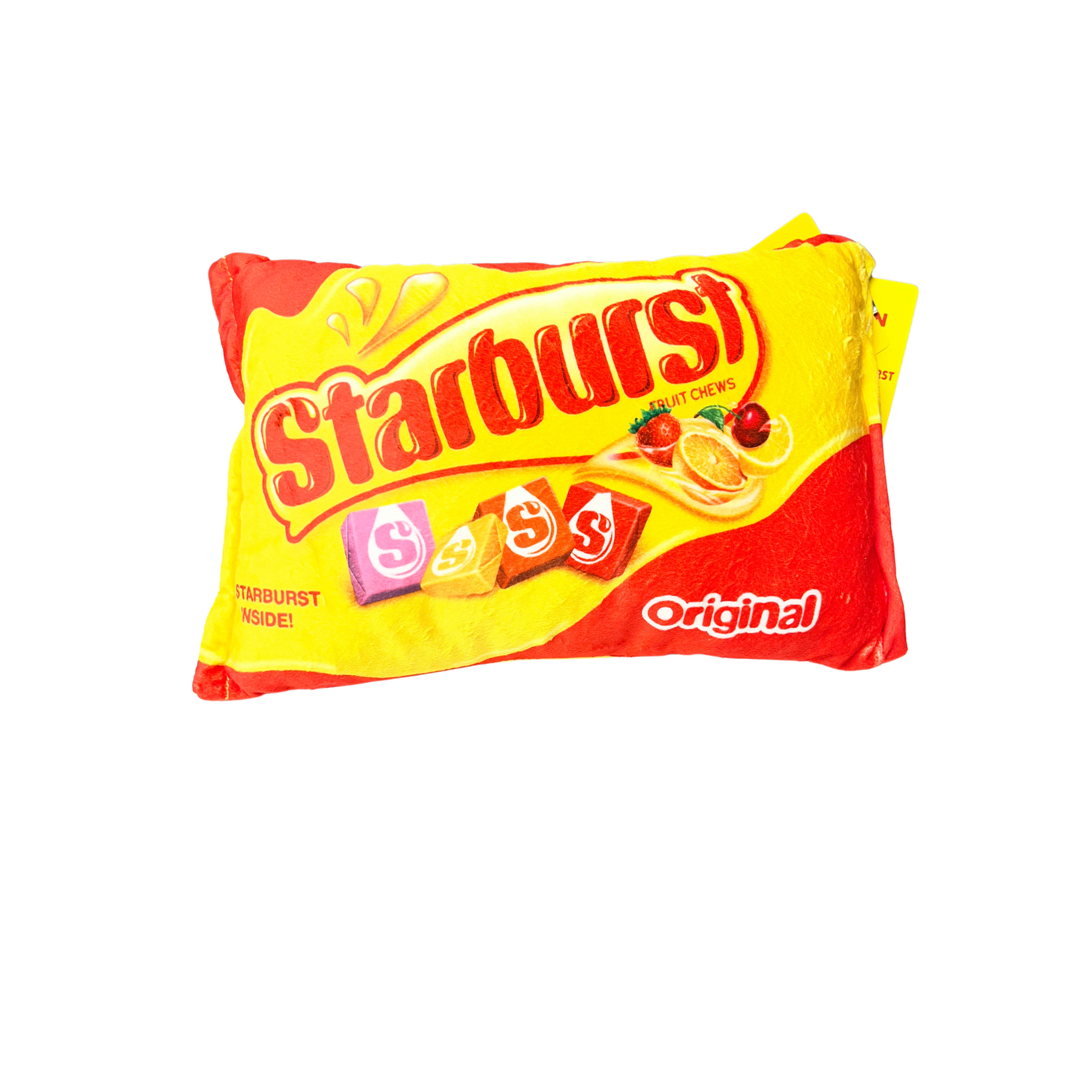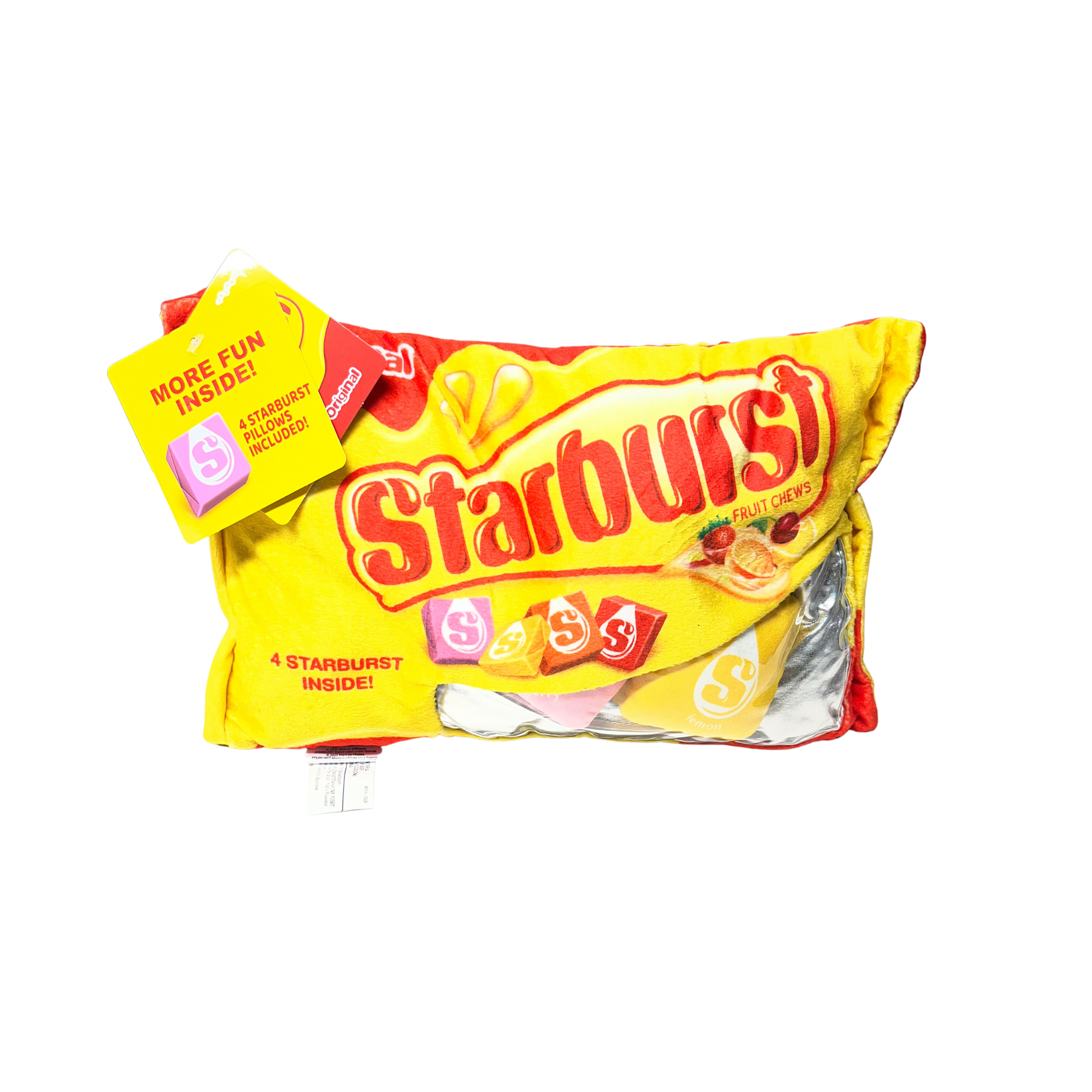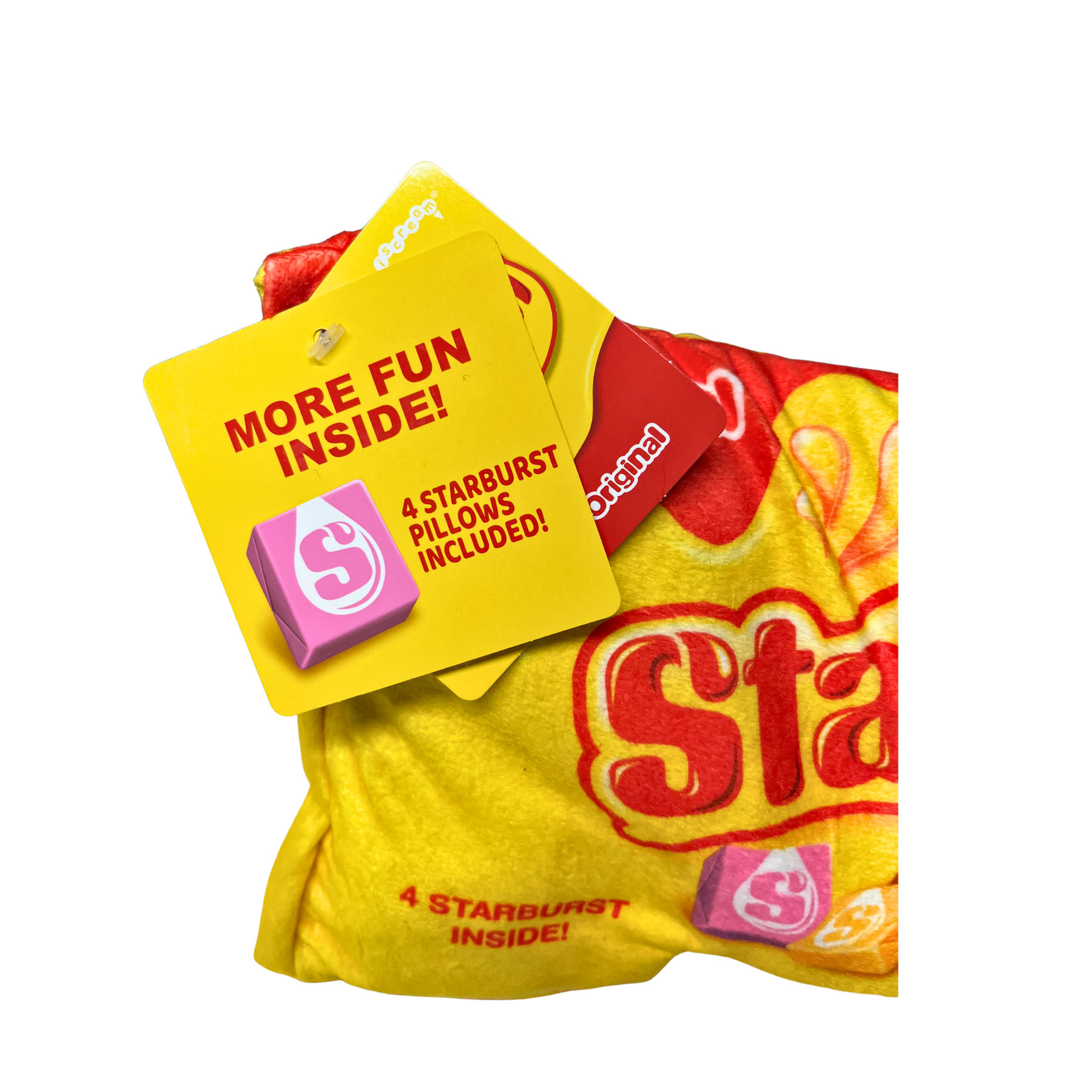 Unwrap a sweet surprise with this Starburst plush pillow! This fun and interactive design includes removable plush fruit chews for extra play and comfort.