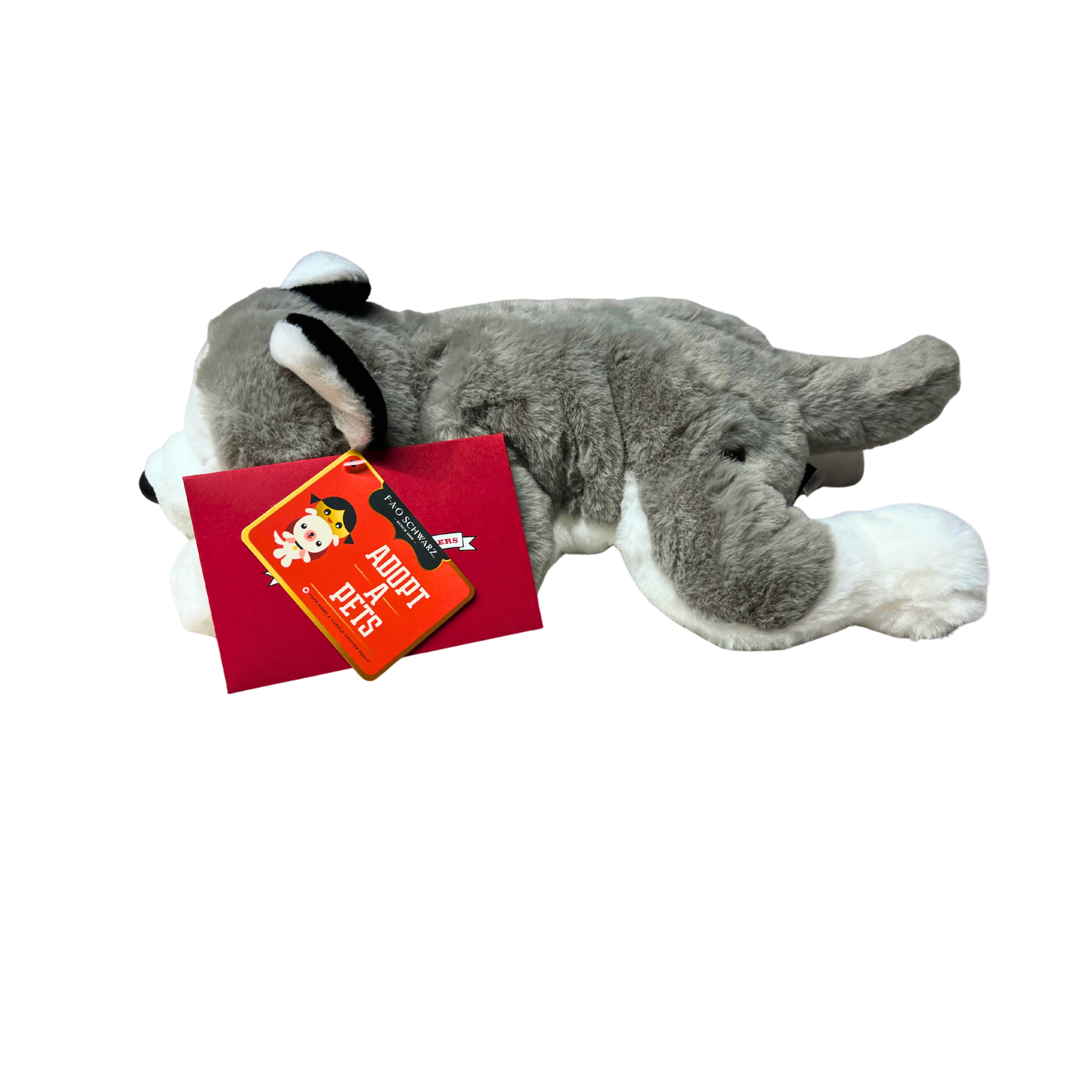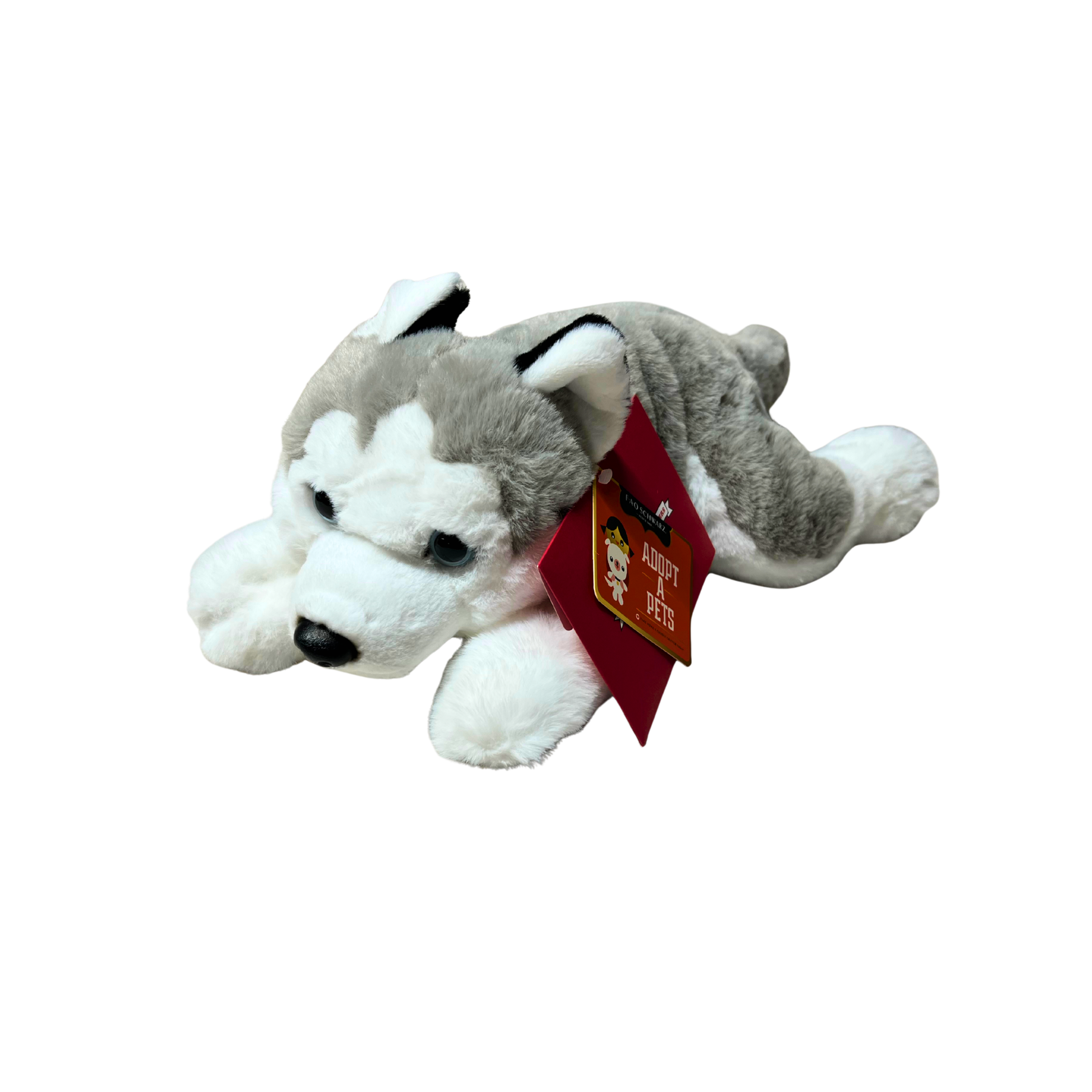 Bring home this adorable FAO Schwarz Adopt-A-Pets Husky plush—a 15" soft companion perfect for collectors and kids alike. With its signature husky markings and cuddly design, this toy captures the charm of classic FAO Schwarz craftsmanship. Ideal for display or play, A delightful addition to any collectible plush collection.