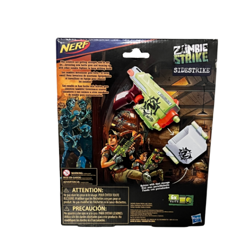 The Nerf Zombie Strike Sidestrike Blaster delivers quick-draw action with its compact, tactical design. This single-hand blaster features a rotating barrel that holds multiple foam darts, allowing you to switch targets rapidly without reloading. Perfect for zombie-themed battles and imaginative play, it combines sleek styling with reliable performance. Includes foam darts for immediate fun. Ideal for kids who love action-packed adventures and competitive blaster battles. Ages 8+