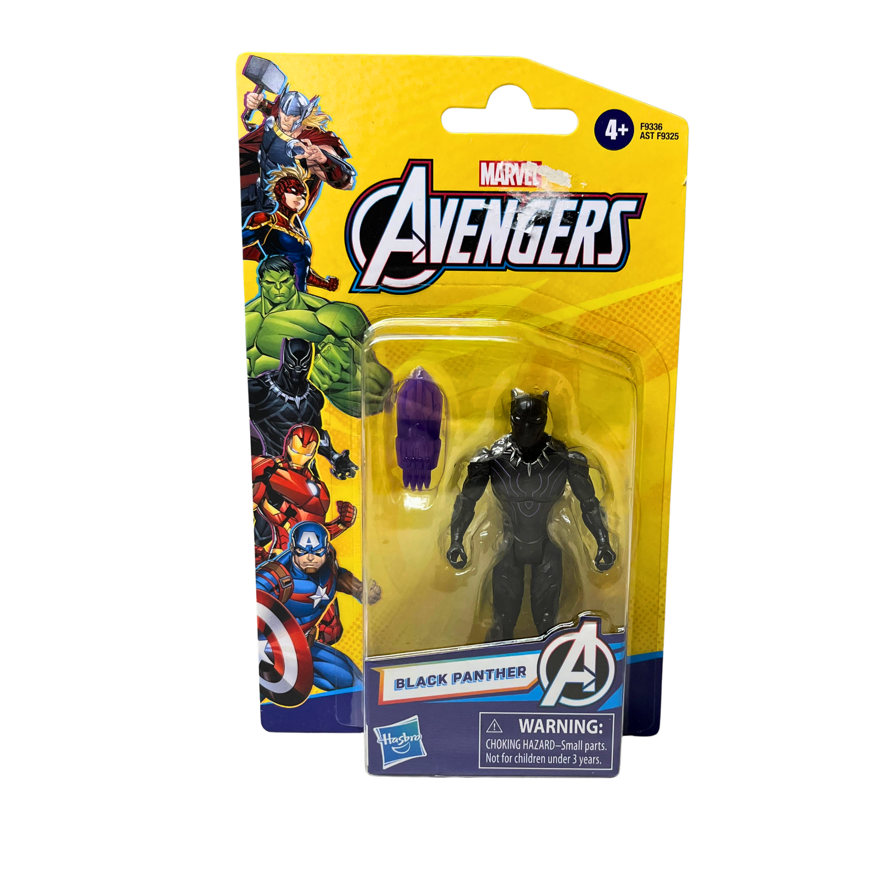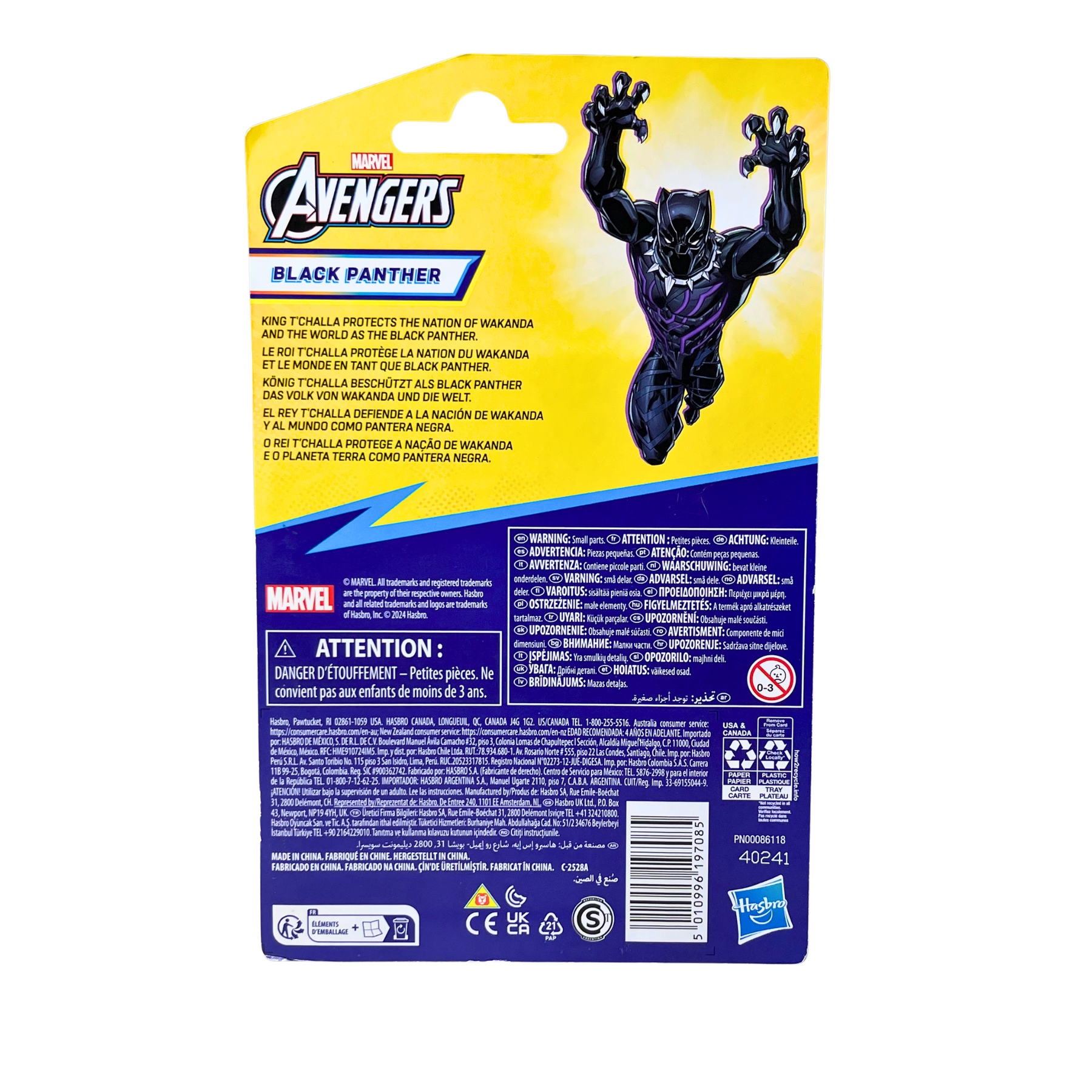 Marvel Avengers Black Panther action figure packaging with yellow and blue design